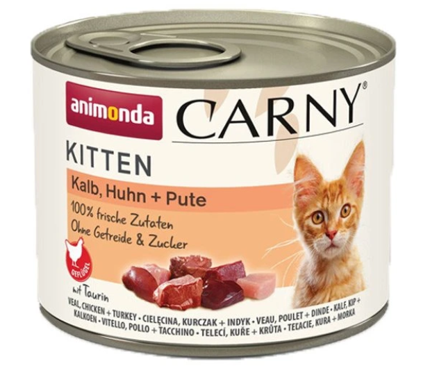 Charakteristika Animonda CARNY® cat Kitten teľacie, kuracie mäso a morka konzervy pre mačiatka