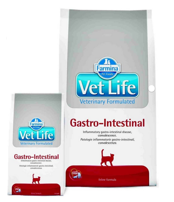 Farmina Vet Life Gastro-Intestinal je kompletné diétne krmivo pre mačky, ktorého zloženie pomáha znižovať akútne poruchy vstrebávania v tráviacom trakte.