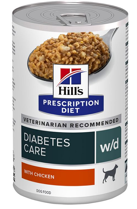 Hill’s PRESCRIPTION DIET w/d krmivo pre psov s kuraťom je kompletné dietetické krmivo pre reguláciu príjmu glukózy (diabetes mellitus) u dospelých psov.