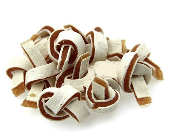 Chutné doplnkové krmivo pre psy všetkých plemien vyrobené z kuracieho mäsa a tresky.